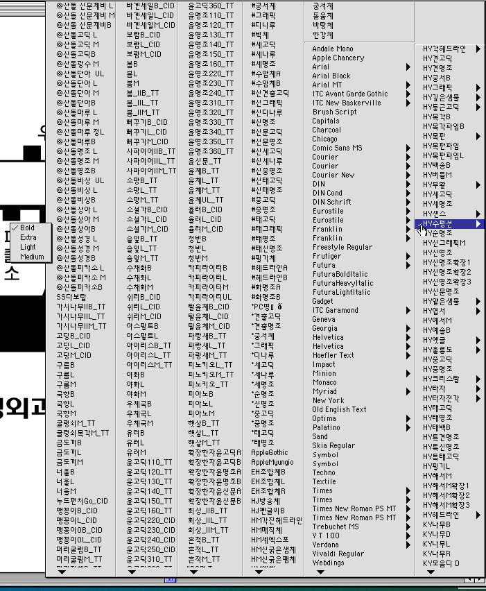 서체가로보기와 편집에서 선한꺼번에 줄이기....