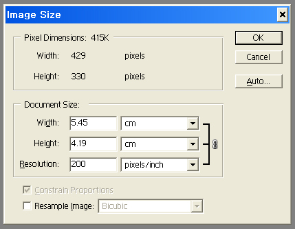 반드시 이미지 사이즈에서 resample image 체크 푸시고 200으로 바꿔보세요.